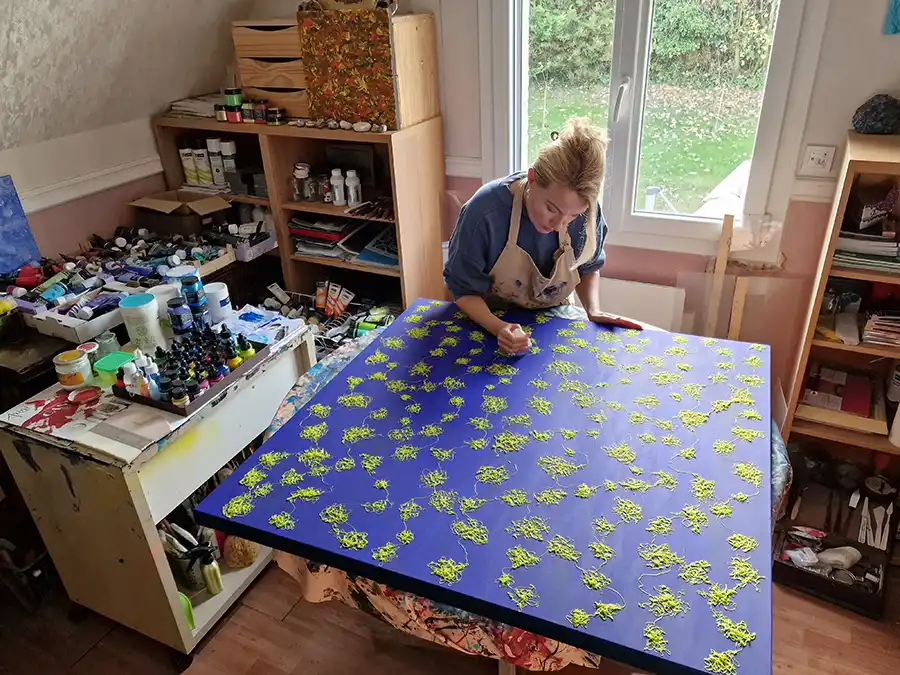 La meilleure façon est de commencer pendant que le sentiment est encore vivant et de croire que le reste viendra. Souvent, je choisis les couleurs et les formes spontanément, guidée par l’intuition plutôt que par la logique.