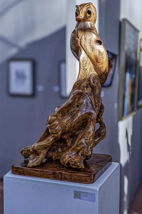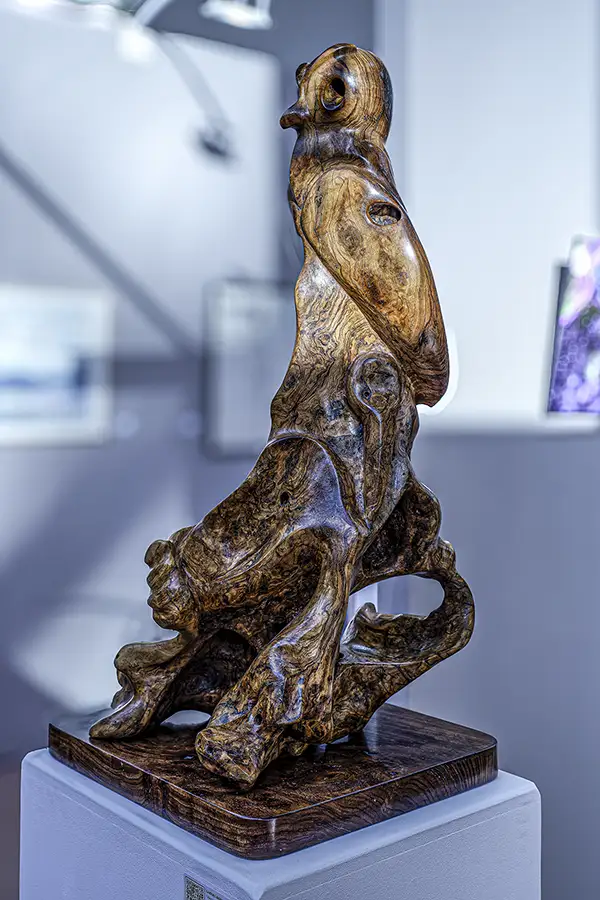 Pour 2026, il nous a présenté “Terra Nostra”. Réalisée en bois d’olivier, (Dans les Racines) son matériau favori très difficile à maitriser, cette sculpture regroupe vingt-deux créatures modélisées en 3D, témoignant de son expertise remarquable dans ce domaine.