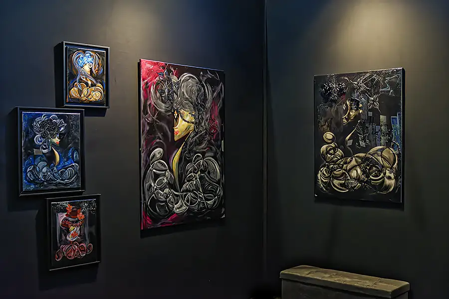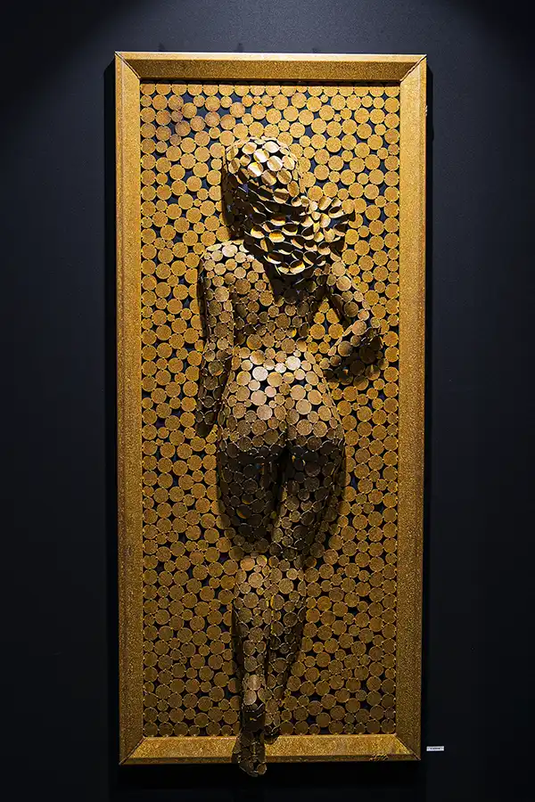 Frédéric Haro, était lui aussi de nouveau présent pour exposer ses très majestueux tableaux – sculptures comme il les appelle. Frédéric est toujours inspiré par les corps et/ou les silhouettes de femmes qu’il magnifie merveilleusement… à la perfection en tenant compte de la technique qu’il utilise.